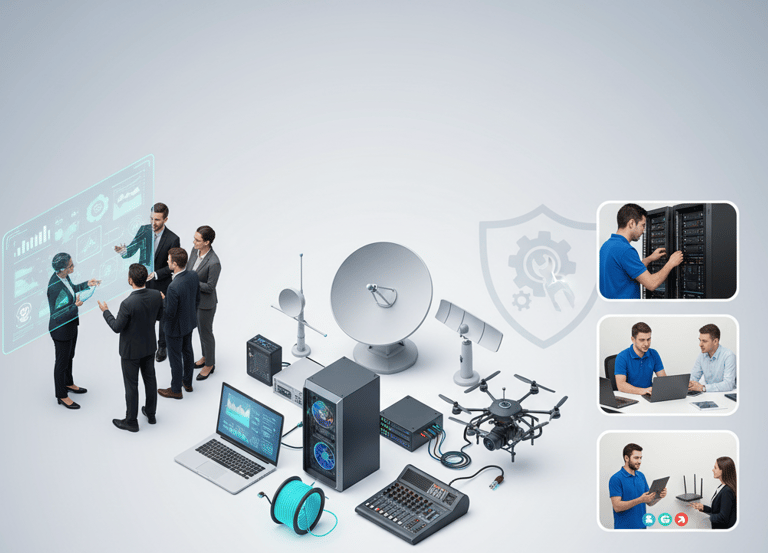 Equipos de Computo / Equipo y Material para Construcción de Redes FTTH / Torres de Telecomunicaciones / Audio, Video e Iluminación profesional / Drones / Equipos de Telecomunicaciones para redes Planta Interna